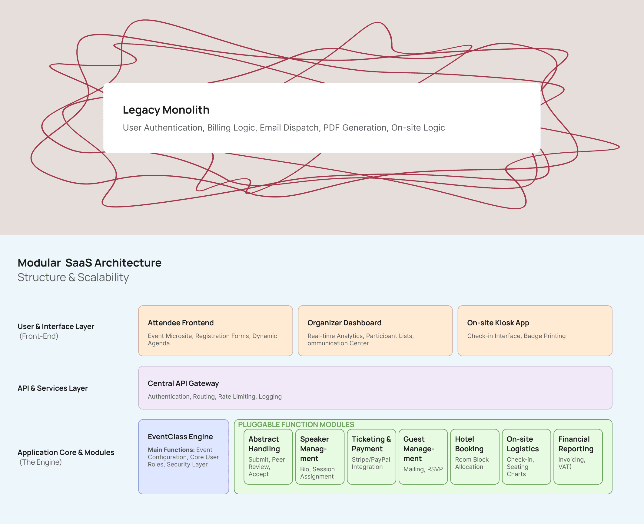 Wiederkehrende Abstimmungskonflikte zwischen Business und Tech wurden durch klare Architekturentscheidungen strukturell gelöst (NDA-geschützt).